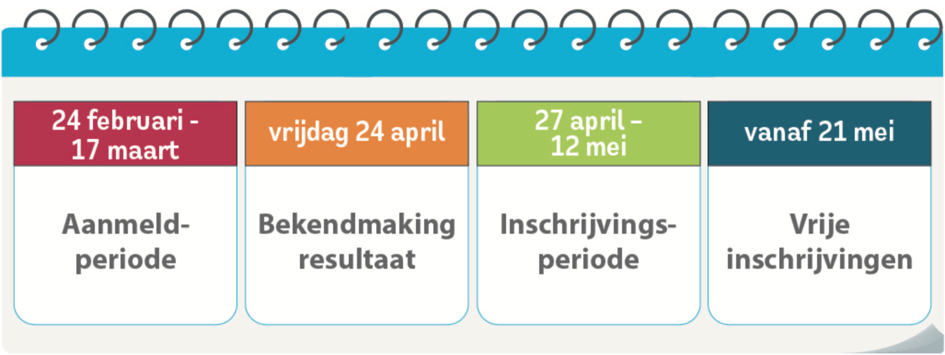 - Inschrijven in de school waarvoor je een ticket hebt gekregen kan vanaf maandag 27 april tot en met maandag 12 mei 2026. Doe je dat niet? Dan verlies je jouw ticket en moet je wachten tot de vrije inschrijvingen die starten op dinsdag 21 mei 2026.