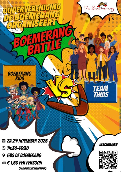 Oudervereniging De Boemerang organiseert op zaterdag 29 november 2025 'Boemerang Battle', een namiddag vol fun, teamwork en een tikkeltje competitie.